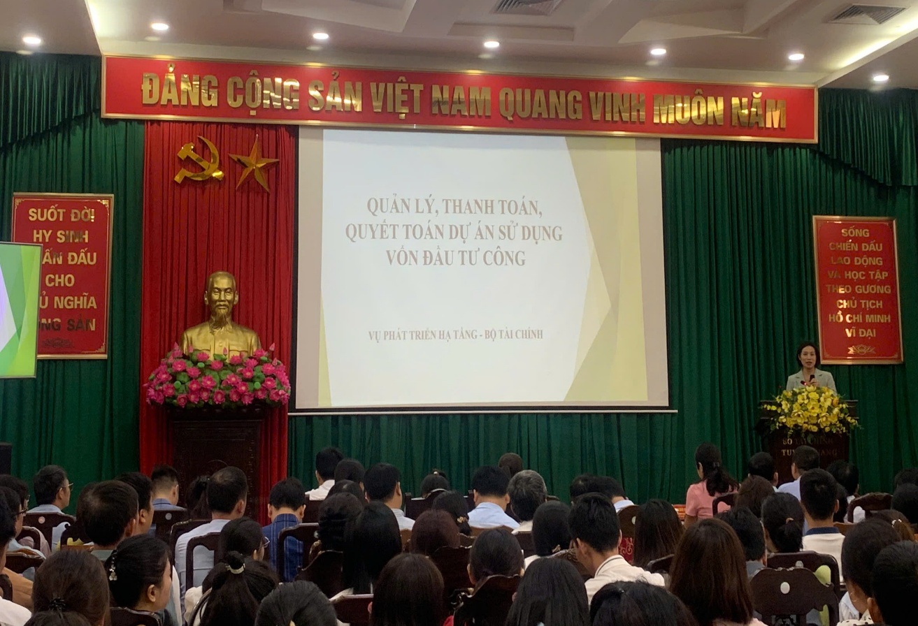 Trong khuôn khổ chương trình tập huấn, học viên được các giảng viên trao đổi và hướng dẫn các nội dung nghiệp vụ về quản lý giải ngân, thanh toán và quyết toán dự án đầu tư công. Học viên được tiếp cận các quy định cụ thể về nguyên tắc quản lý thanh toán, quy trình lập hồ sơ tạm ứng, thanh toán khối lượng hoàn thành và trình tự lập báo cáo quyết toán theo biểu mẫu mới. Tại buổi tập huấn học viên và giảng viên cùng thảo luận, trao đổi trực tiếp. Đây là không gian mở để các cán bộ địa phương trình bày khó khăn thực tế, được hai chuyên gia từ Bộ Tài chính hỗ trợ giải đáp trực tiếp các vướng mắc liên quan đến nội dung quy định về quản lý, thanh toán và quyết toán dự án sử dụng vốn đầu tư công hoàn thành.